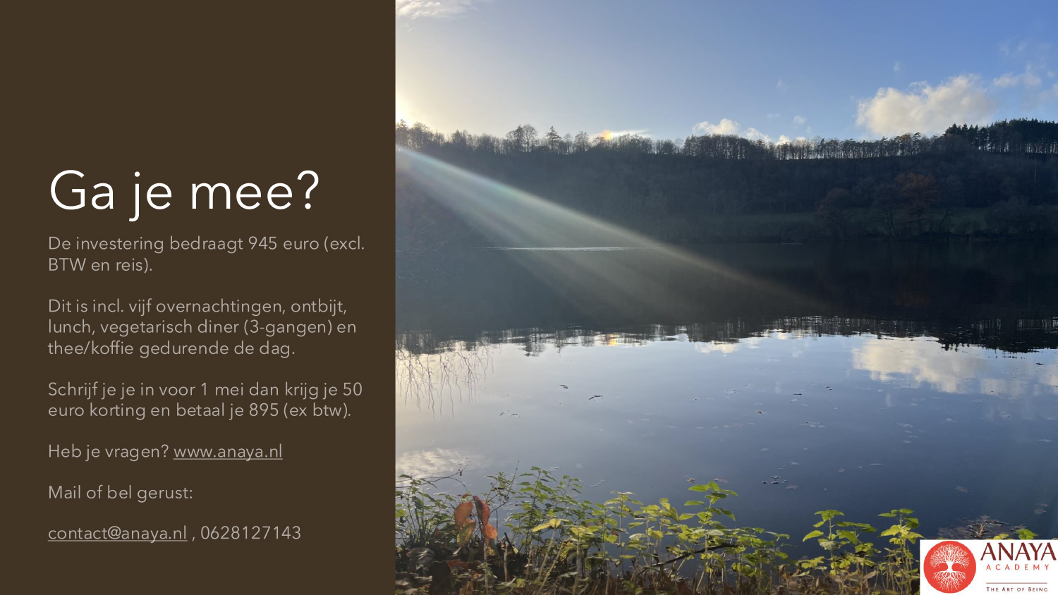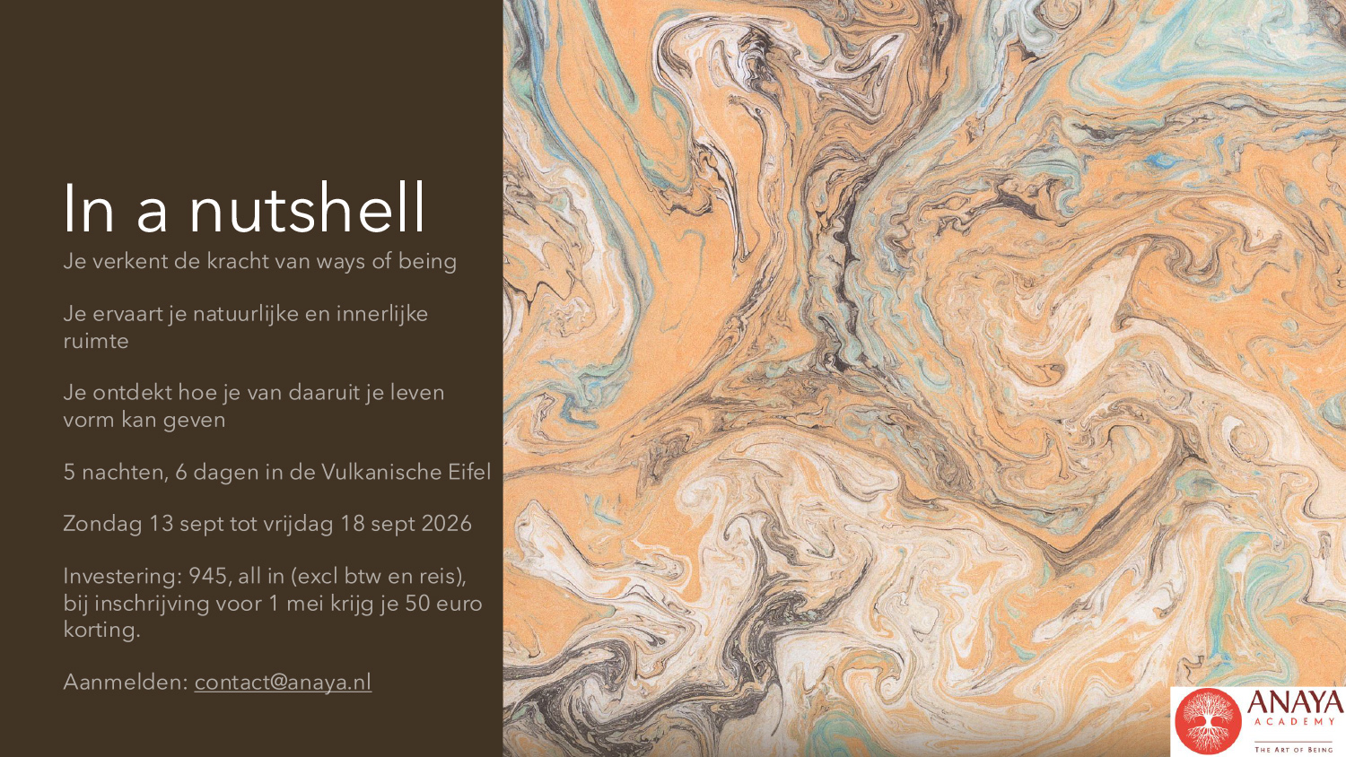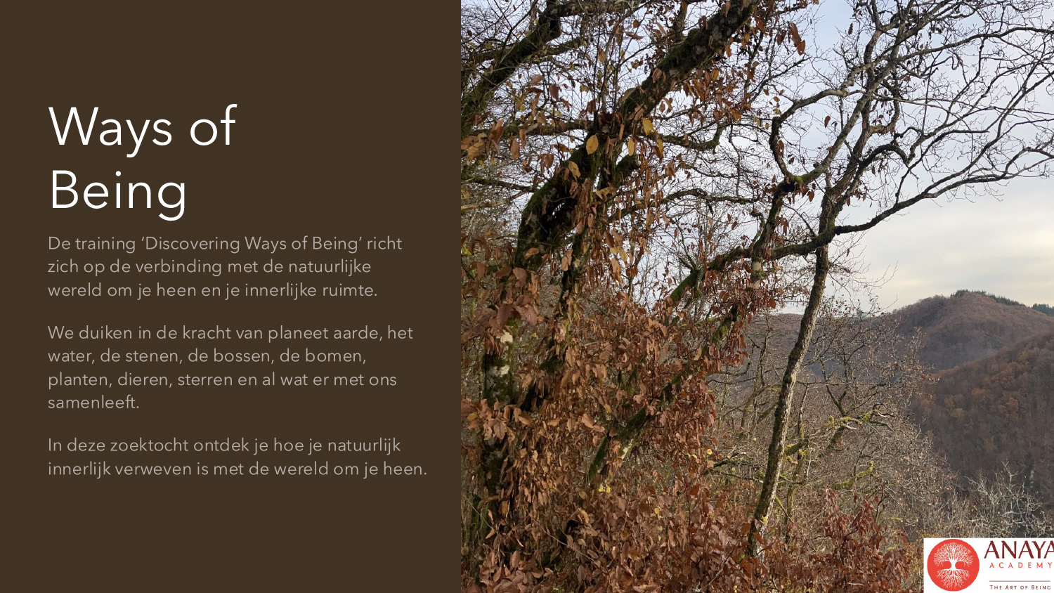 De training ‘Discovering ways of being’ richt zicht op de verbinding met de natuurlijke wereld om je heen en je innerlijke ruimte.